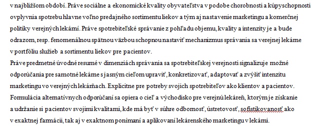 Samozrejme, že tieto fakty determinujúce a limitujúce spotrebiteľské správanie verejnosti vo verejných lekárňach nie sú solitérom, ale majú jasné kontúry v previazanosti na politickú a makroekonomickú základňu v najbližšom období. Práve sociálne a ekonomické kvality obyvateľstva v podobe chorobnosti a kúpyschopnosti ovplyvnia spotrebu hlavne voľno predajného sortimentu liekov a tým aj nastavenie marketingu a komerčnej politiky verejných lekární. Práve spotrebiteľské správanie z pohľadu objemu, kvality a intenzity je a bude odrazom, resp. fenomenálnou spätnou väzbou schopnou nastaviť mechanizmus správania sa verejnej lekárne v portfóliu služieb a sortimentu liekov pre pacientov.