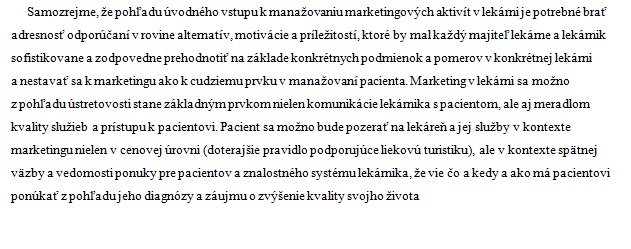 ÚVOD Spoločenské, ekonomické a aj spotrebiteľské prvky udomácnené v iných komoditách a činnostiach sa exaktne pretransformovali aj do oblasti liekov, zdravotníckych pomôcok a vôbec aj do sféry poskytovania zdravotnej starostlivosti, zdravej výživy, prevencie a zdravého životného štýlu. Podobne ako v iných komoditách sa správanie spotrebiteľskej verejnosti menilo a mení aj vo vzťahu k poskytovaným službám v lekárenstve. Spotrebiteľské, resp. pacientske správanie sa vo verejných lekárňach na Slovensku prešlo dôležitými štádiami a to v závislosti od ekonomických, spoločenských a hlavne legislatívnych podmienok, ktoré limitovali najprv podnikateľské prostredie vo verejných lekárňach a následne potom liberalizovali aj samotne spotrebiteľské správanie vo vzťahu k ponúkaným službám verejných lekární. V tejto súvislosti je potrebné z našej strany podotknúť, že spotrebiteľské správanie je na jednej strane určitým výsledkom tzv. marketingových „ponúk“ lekární a na druhej strane samotné spotrebiteľské správanie ovplyvňuje marketing a kvalitu služieb v lekárni, teda je explicitným nositeľom spätnej väzby a súčasne aj (niekedy) potenciálnym impulzom pre lobistov a zákonodarcov v tendenciách a aktivitách zmeny liekovej legislatívy podľa potrieb záujmových skupín.